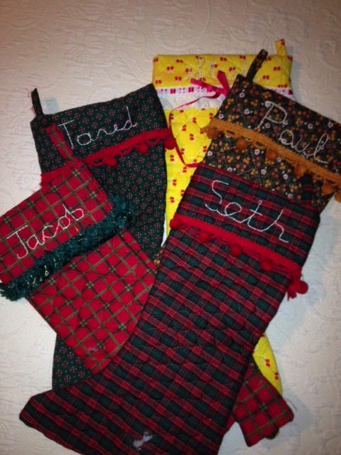 As my boys have gotten older, left home, one is married, even-I have been rethinking some of our holiday traditions. Since the stuffing of the stockings has never been tons of fun for me (basic magazine, gourmet candy, razor blades, travel size accessories, ear buds, etc…) I was looking forward to turning this task over to my new daughter-in-law and just have 2 to stuff. Then next year when another son will be married I’ll be down to 1.