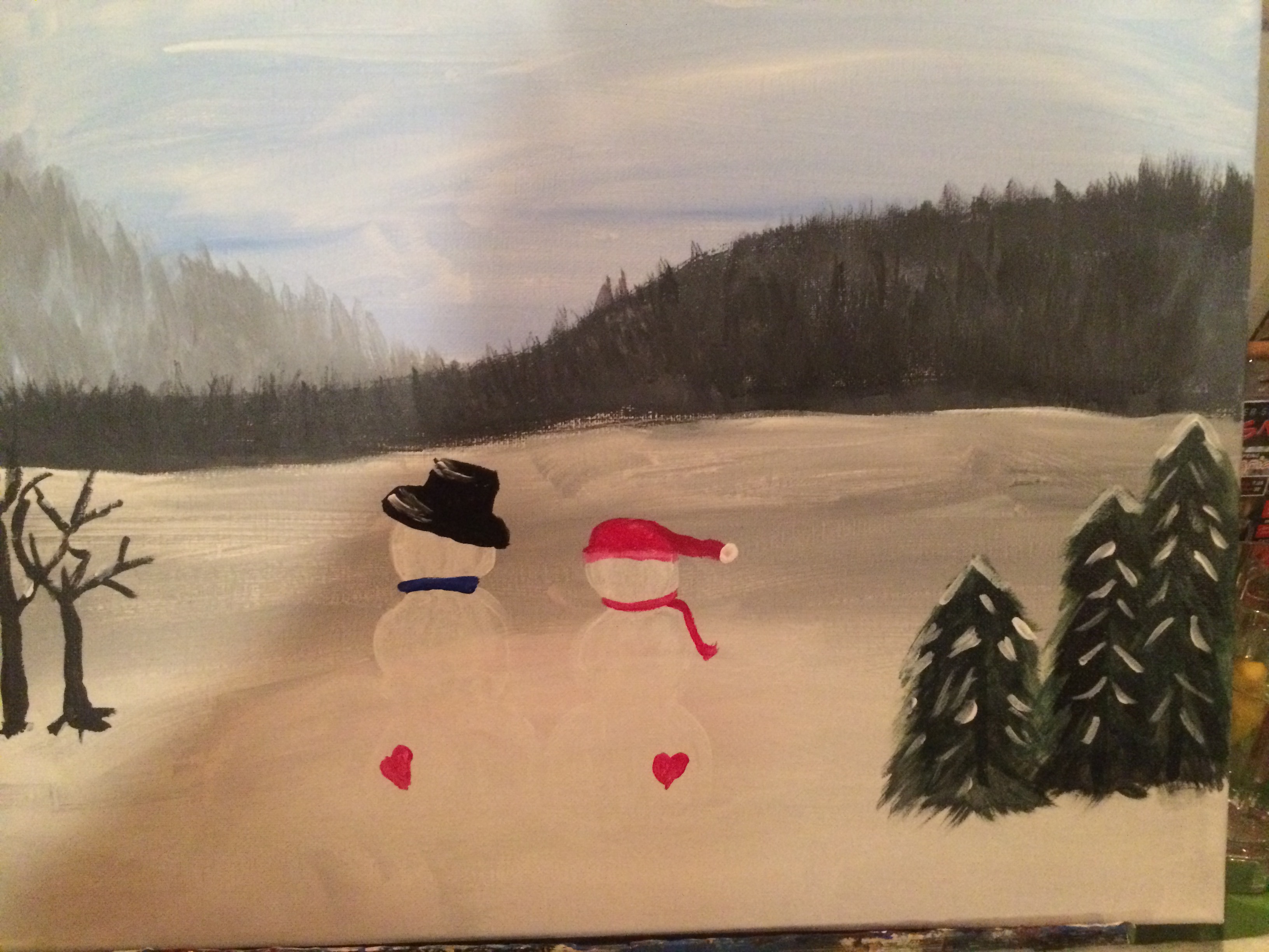 Me and the hub as a snow couple (I painted this!) out on our own. In the cold. All alone.